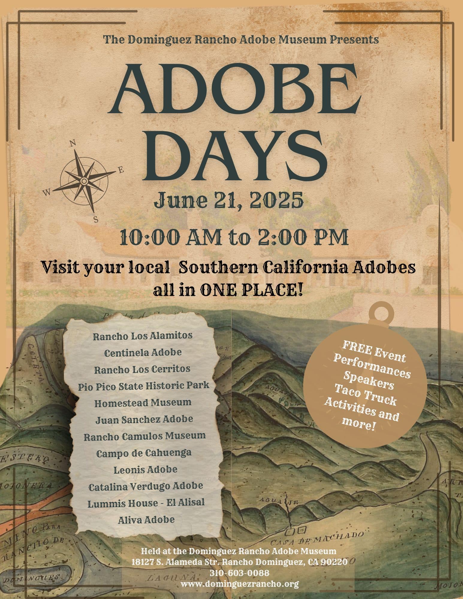 June 21st from 10:00 AM to 2:00 PM This our Second Annual Adobe Days event being hosted by the Dominguez Rancho Adobe Museum. We are welcoming even more of our local adobes to come to our rancho and engage with the community all in one spot! When else can you see all the local adobes...Read More
